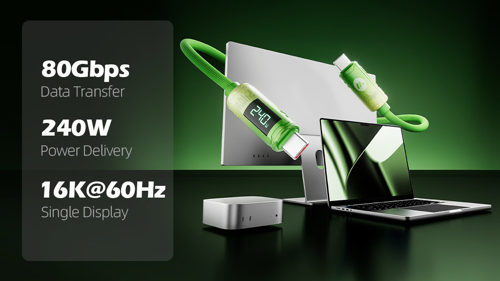 Cyberpunk Thunderbolt 5-Compatible Cable with Power Display